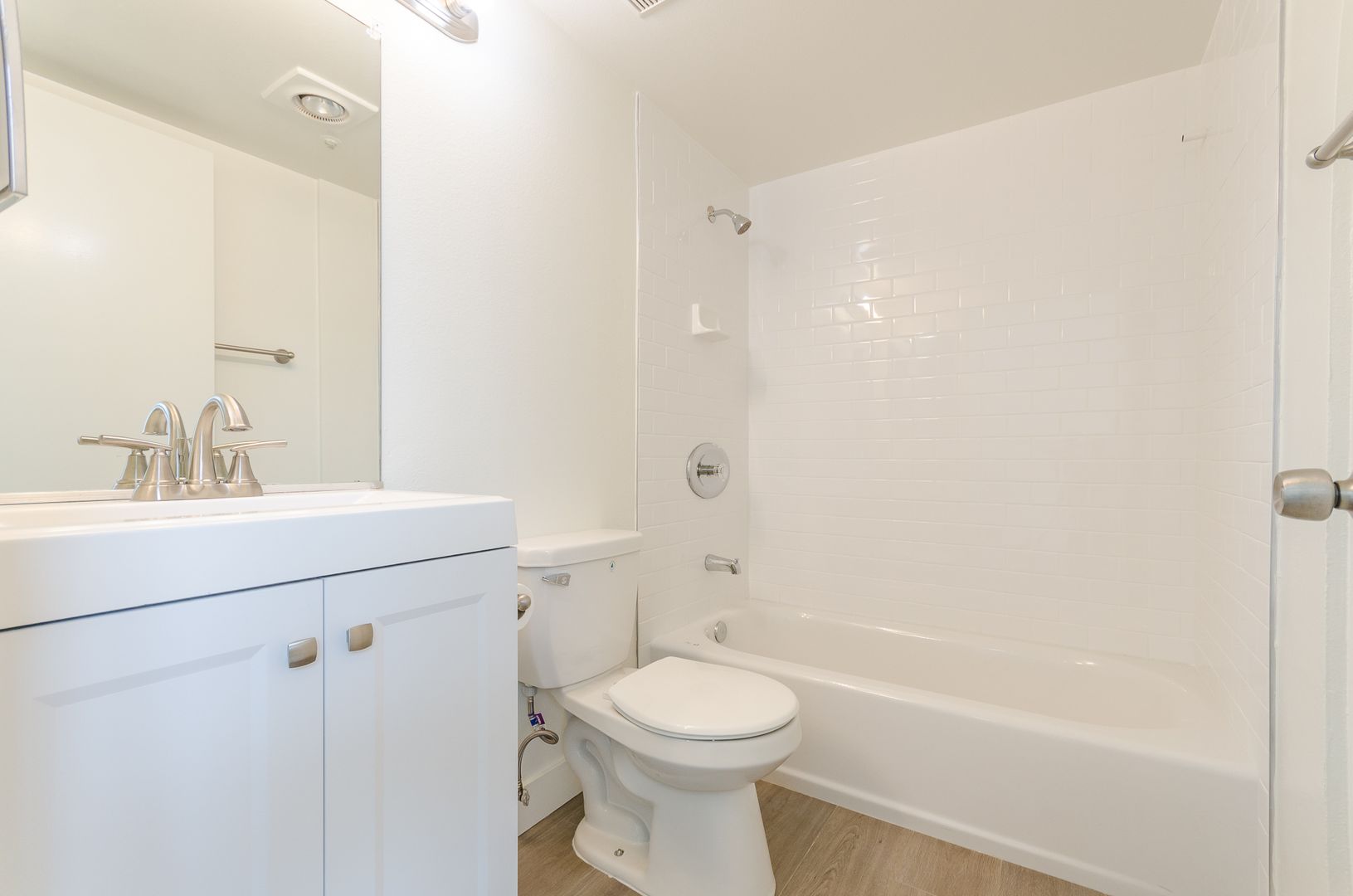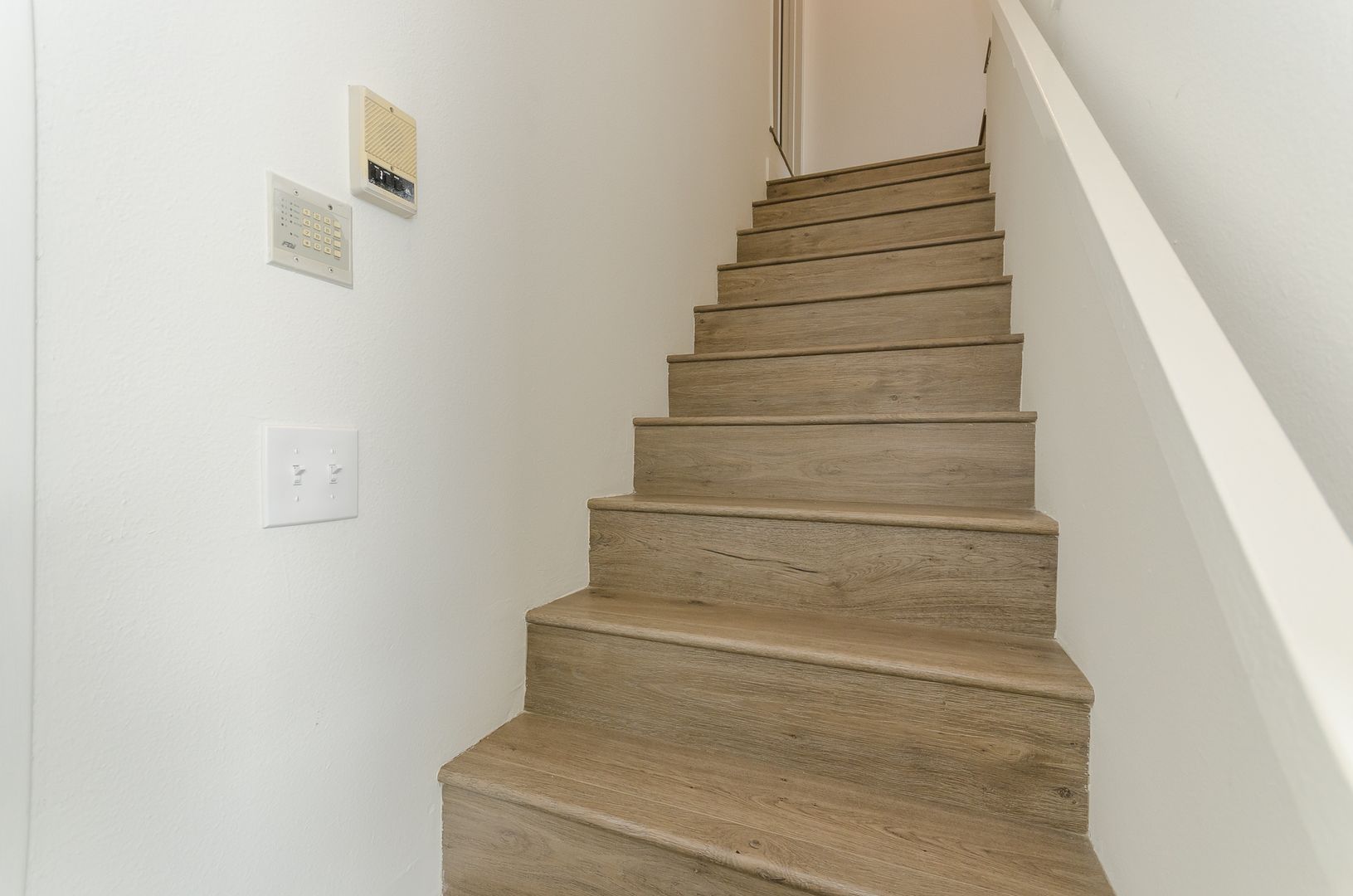 This gorgeous top floor unit is a renovated unit with hardwood vinyl plank flooring throughout. Stainless steel appliances and granite/quartz counter tops. Renovated tile bathrooms. Double high ceilings in the main living space lets in tons of natural light and is perfect for entertaining. Lots of storage space with two giant walk in closets.