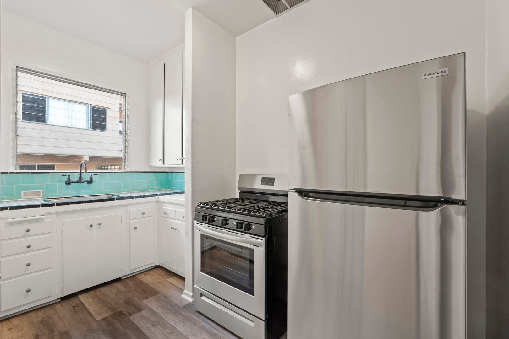 This apartment building is a centrally located oasis, tucked away just North of West Hollywood with a beautiful layout that features original finishes, hand-crafted design and classic Hollywood charm. This spacious apartment is a short walk from Plummer Park, Electric Owl, Aroma Cafe, El Compadre, Bohemia Cafe and Ralphs on Sunset. It's also a few blocks from attractions including Harlowe, Breakfast by Salt's Cure, Ysabel, Blue Bottle Coffee, Trader Joe's, and Poinsettia Recreation Center